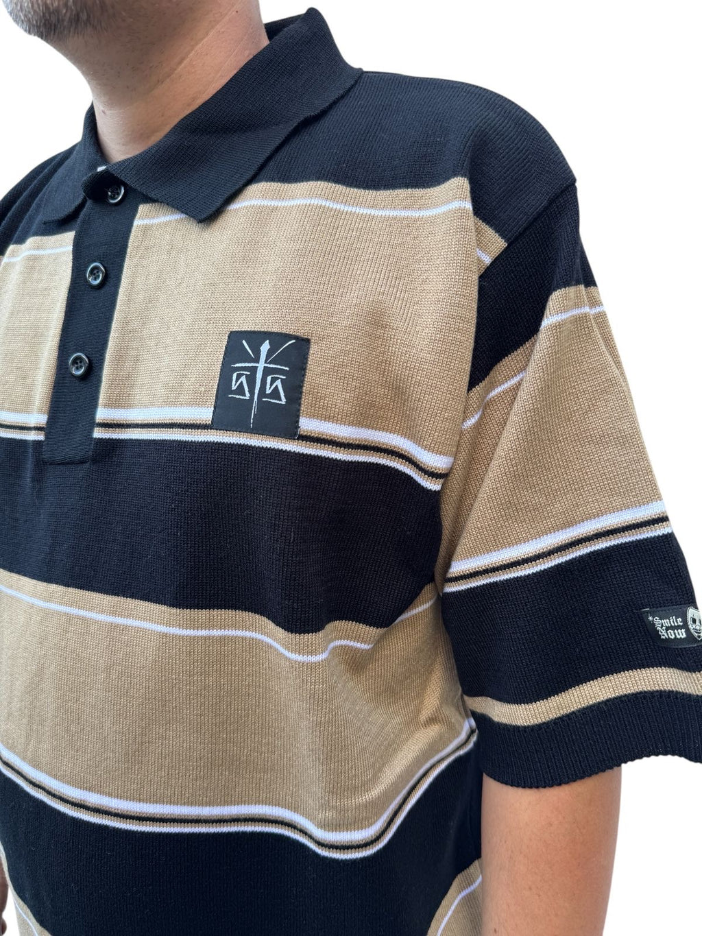 Polo tejida”Cruzito” caramelo negro/blanco/caqui