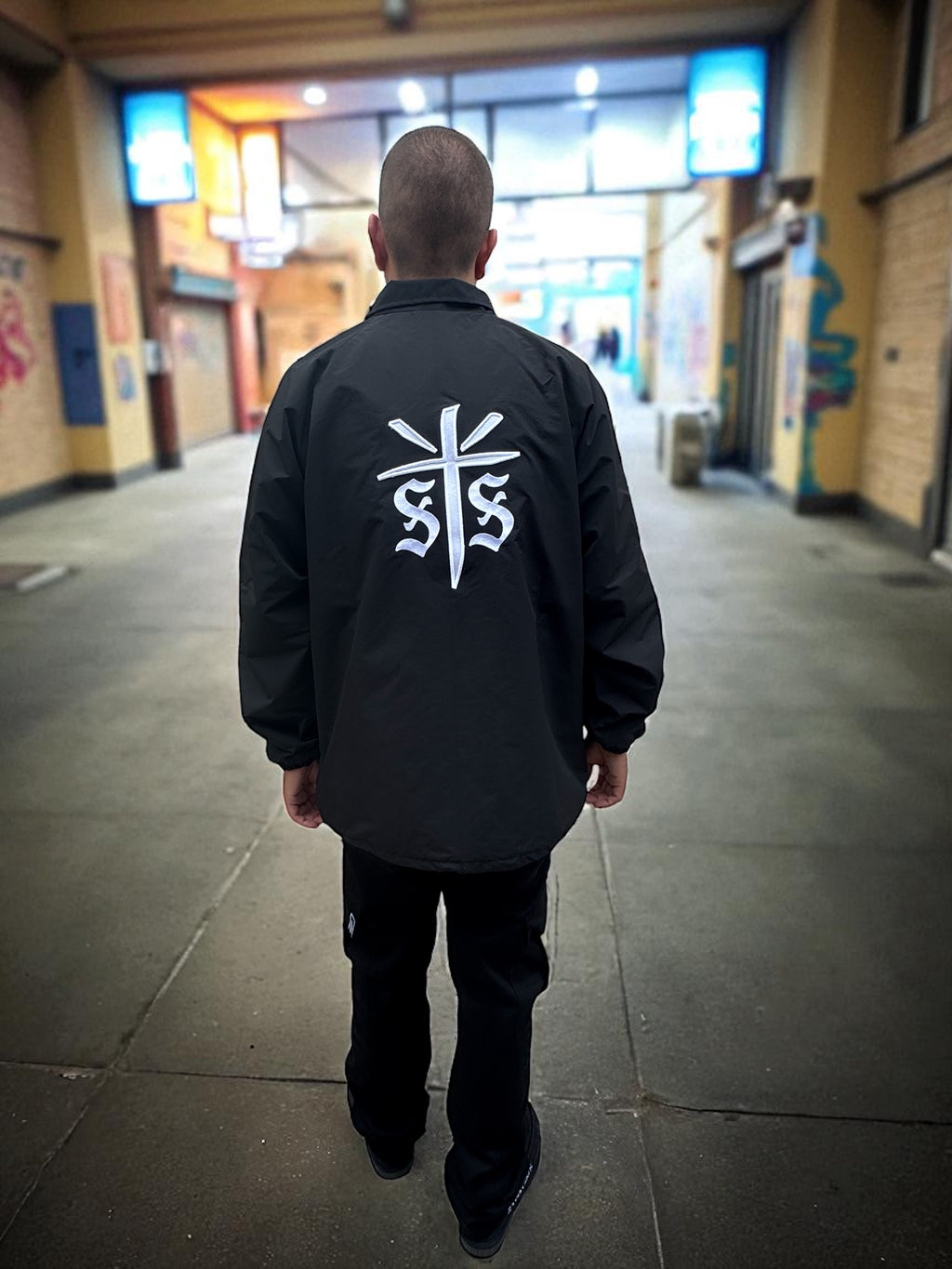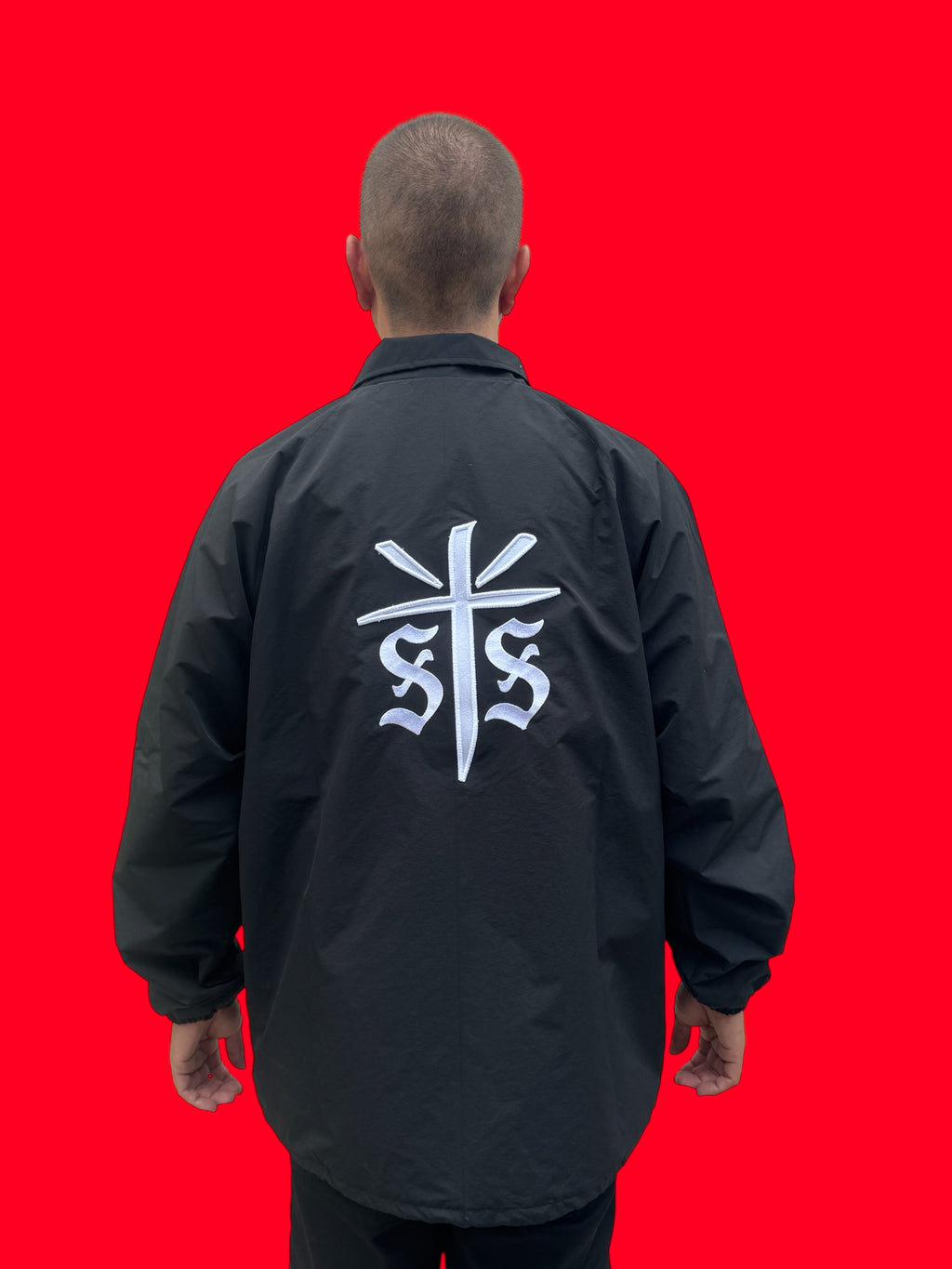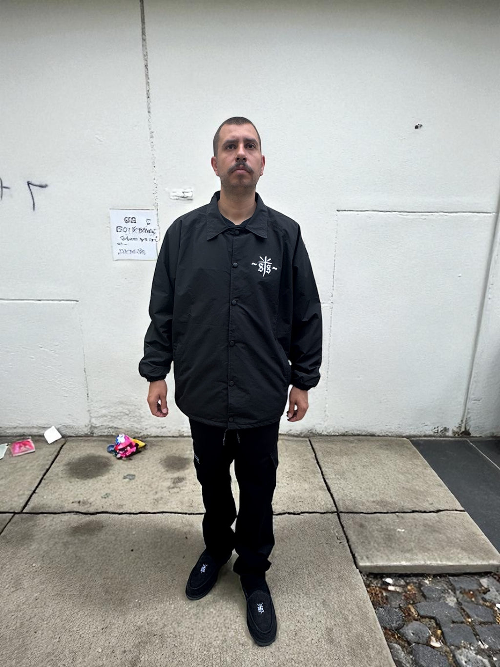 Chamarra rompevientos en color negro con un estilo tumbado.